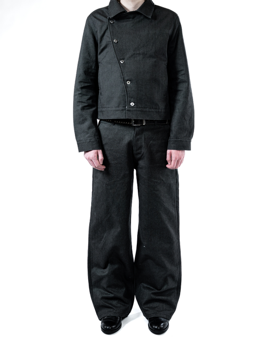 CHARCOAL RUGGED CANVAS ASYMMETRICAL JACKET